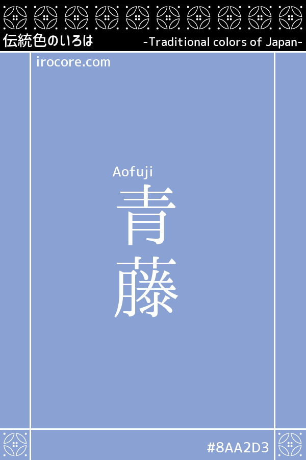 The Aofuji, that of Fuji-iro the bluish, is a bluish strong thin blue-violet. Derived color of mauve. "Fuji-iro" is a popular traditional color to women than the time of the peace named after factor to the color of the wisteria, its popularity does not change even in the Edo era, in the late Edo period, "Fujinezumi", "Fujinando" " many derivative color such as Usufuji "was born. Blue mauve is one of them.