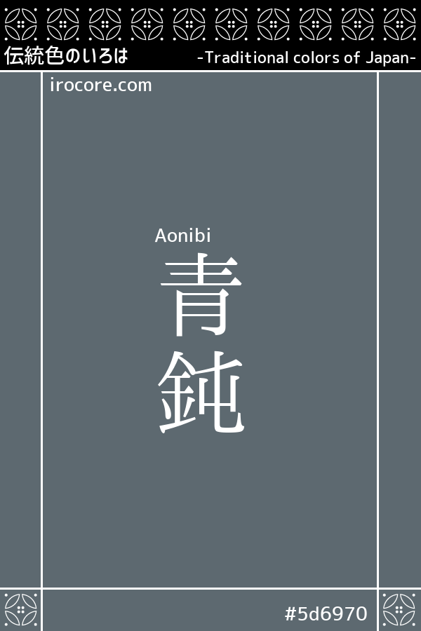 The Aonibi is a dark gray with a blue tinge. It is a derivative of "aonibi-iro. It can also be read as "aonibu". In the Heian period (794-1185), it was used as a color for priests' and nuns' robes in times of war.