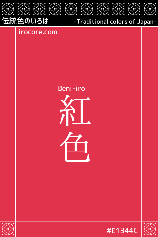 The Beni-iro, is a bright red by the stain of safflower. Or in some cases to refer to the red of Purplish, that this case is of the three primary colors CMY colorant M of "magenta". It is also read as "Kurenai" and "Koushoku".