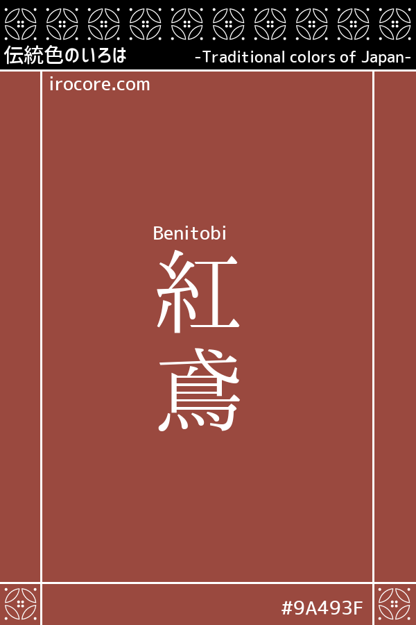The Benitobi, is a dark reddish-brown tinged with crimson. It was popular in the mid-Edo period at age 28, but including the Tobiiro, the color of the kite line "Aitoboi", "Kontobi" and "Murasakitobi" was in vogue this other at this time.