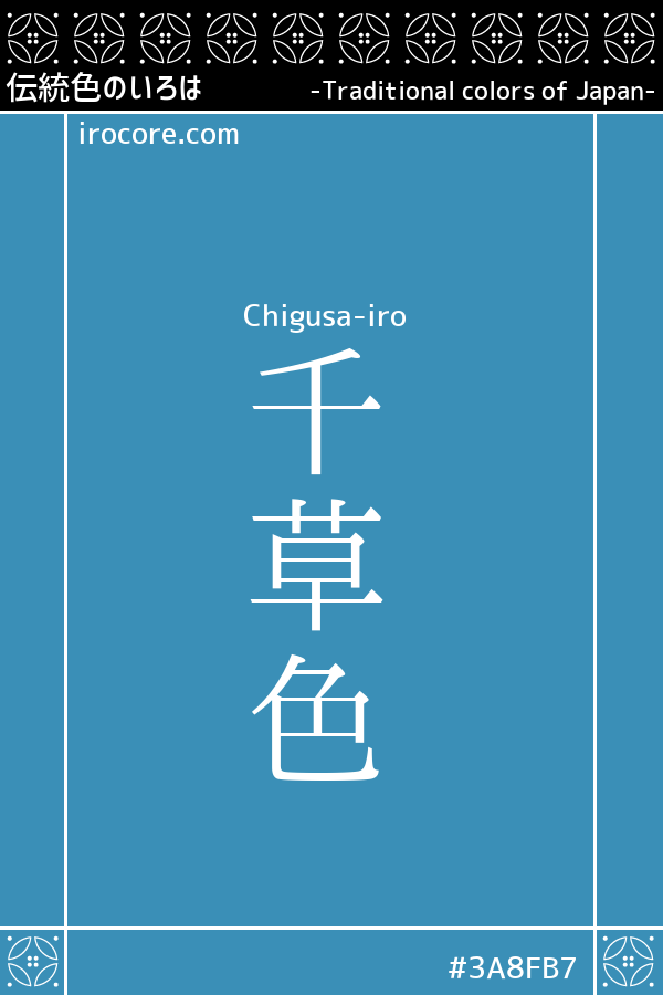 The Chigusa-iro, it is a bright blue-tinged greenish slightly. The thing Tsuyukusa a name that was corruption from Tsukikusa and Chigusa of color name. Tones between Hana-iro and Asagi-iro by Aizen, I was used as a base color of the dyed superimposed many.