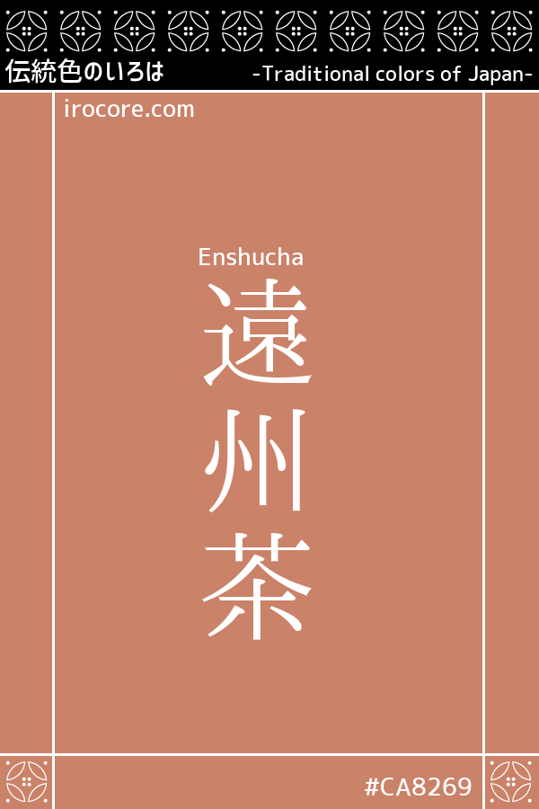 The Enshūcha, it is a dull reddish orange. It is known as the color Enshu Kobori, known as landscape architect, such as Katsura Imperial Villa in the tea masters of the Edo period the previous fiscal year's favorite. Staining become to be done is the Kanei year later he played an active part tea ceremony, in landscaping.