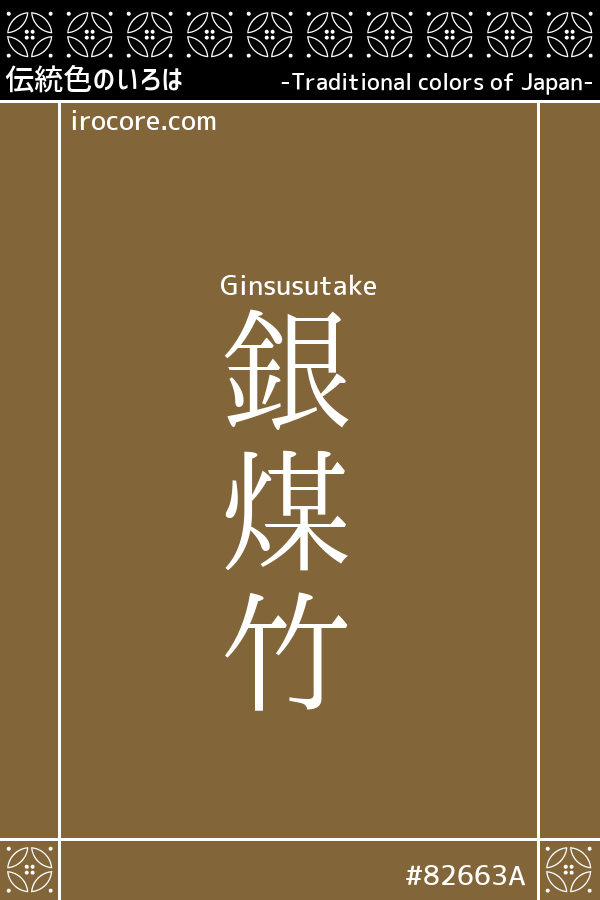 The Ginsusutake, it is a color, such as taking into account the silver to dark red color, such as sooty bamboo. Sense to lice consuming, money is used to sense yellowish Cal silver color name. Susutake-iro can be seen from Edo previous fiscal year, because it was the color of the Kishu weather lovers, Ginsusutake was said to be the Kishu tea.