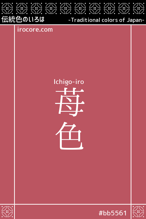 The Ichigo-iro, it is like the fruit of the strawberry colored vividly, red purplish little. Strawberry to say here is that the Dutch strawberry that was introduced from the Netherlands in the late Edo period, I was pointing to the raspberry Previously it. It is not the color name of the ancient Japanese.