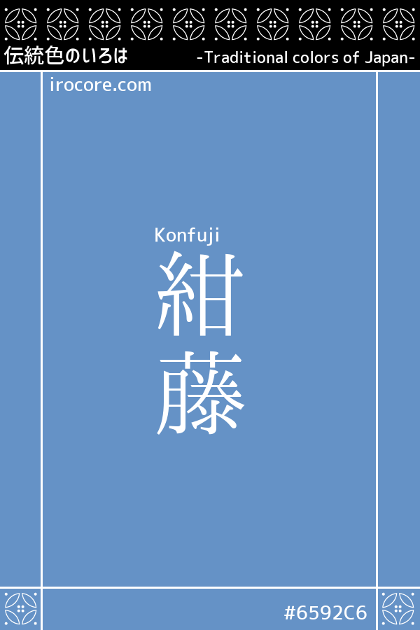 The Konfuji, is a bluish strong bitter blue-violet. Is the traditional color of the old "Fuji-iro" Henshaw color was shell Kon a. It is a popular Fuji-iro women from the time of peace, but the hue is also attracted Edo women, various Henshaw color, such as "Benifuji" and "Fujimurasaki" "Fujinezu" was born. In addition, its such as derived color, such as from a strange phase color "Usubenifuji" is born, color name bears a number of the "Fuji" in the late Edo period has been born.