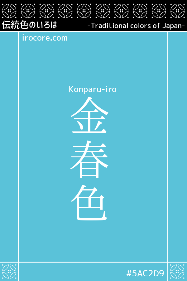 The Konparu-iro is a bright blue with bright greenery. This color was called "Konparu-iro" because the geisha who used to store in "Konparu-Shinmichi" in Tokyo-Shinbashi liked it and used it.