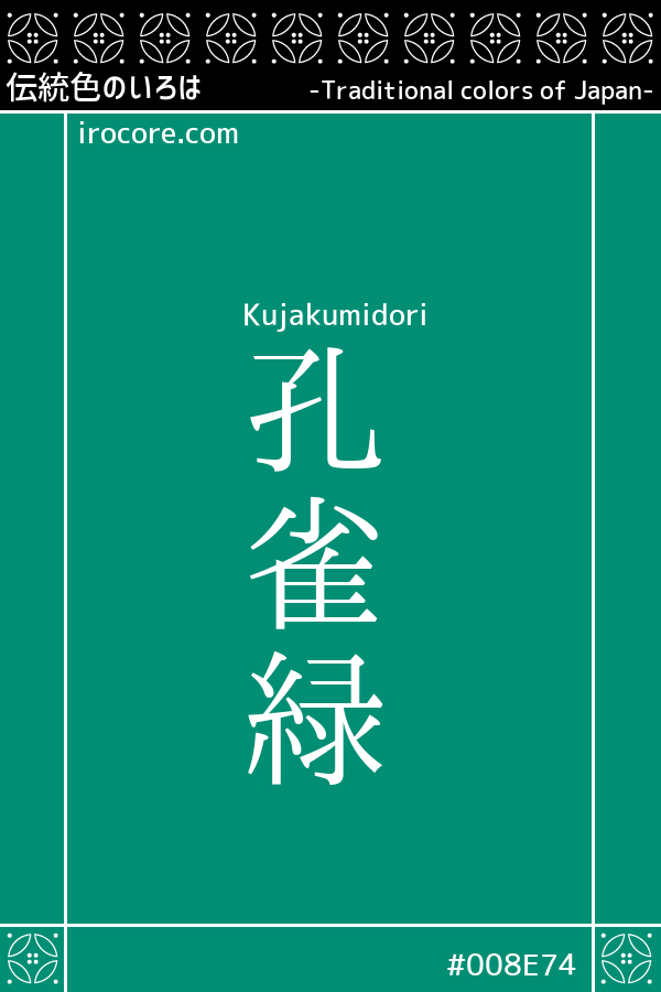 The Kujakumidori, it is the vivid blue-green, such as the peacock of the beautiful blue-green feathers. It comes from the vivid green to bluish found in peacock feathers. Also be read as "Kujakuryoku", there still also alias of "Kujaku-iro".