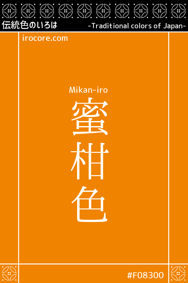 The Mikan-iro, It is a yellow-red, such as the epidermis of the fruit of the mandarin. It is yellowish and strong redness is a bit less than orange in color standard of JIS. Evergreen tree of Odaka Rutaceae, it is easy to inorganic skin, tangerine, and refers to the generic name of the fruit is sweet. Wenzhou mandarin domestic is typical.