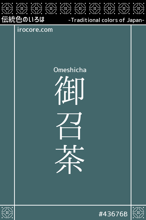 The origin of the color name is that the high quality crepe used by Ienari Tokugawa, the 11th shogun of the Edo shogunate, came to be called "Omeshi" or "Omeshi-chirimen", and this name was given to the yarn-dyed color of "Omeshi". Incidentally, the word "omeshi" is originally a respectful word meaning "to wear.