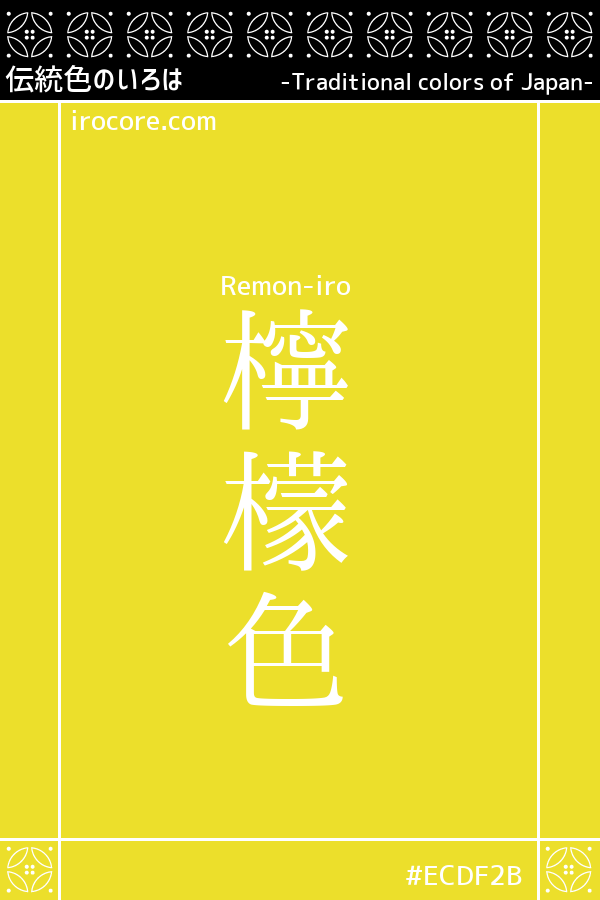 The Remon-iro, it is a pale yellow tinged slightly greenish. A color name derived from the fruit of the lemon, the paint was born in Europe in the 19th century "lemon yellow" is now known in Japan, and came to be called "檸檬色".