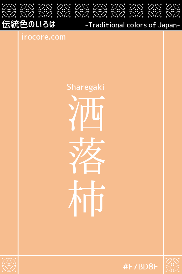 The Sharegakio, it is a pale Kakiiro as exposed wash Kakiiro. It was a "joke persimmon" and parodied "exposed persimmon" in the Genroku period time. I will think good of this euphony also matches the taste of Edo. In Kakiiro pale than washing persimmon, I refers to the color slightly darker than the thin persimmon.