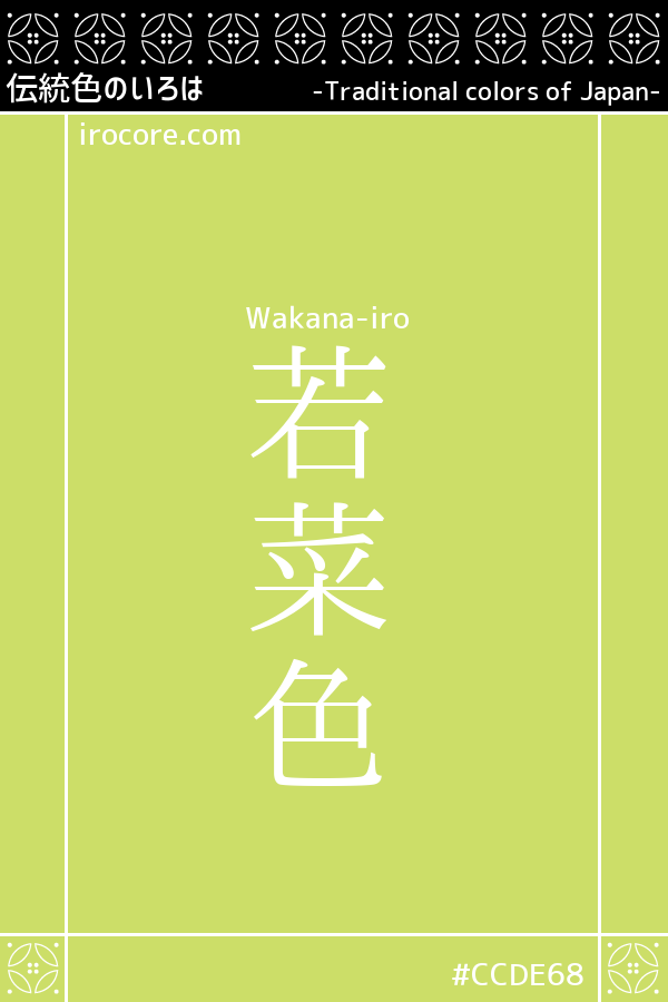 The Wakana-iro, is a bright yellow-green like Wakana of early spring. Is a refreshing color that points to the overall color of the early spring of edible wild plants, but it is also referred to as a color named after factor in the spring of herbs from it is the alias of "Wakana" is "Spring of seven herbs".